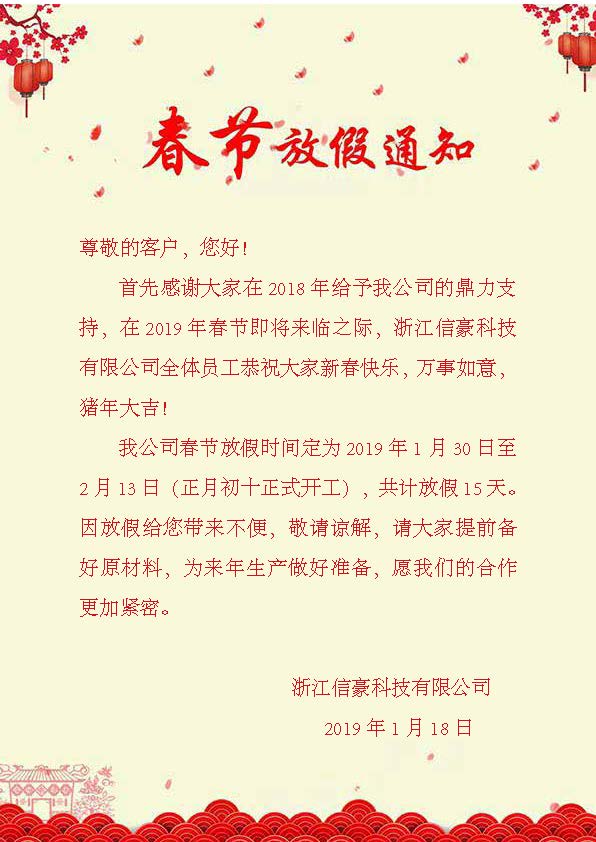 2019年春節放假通知
